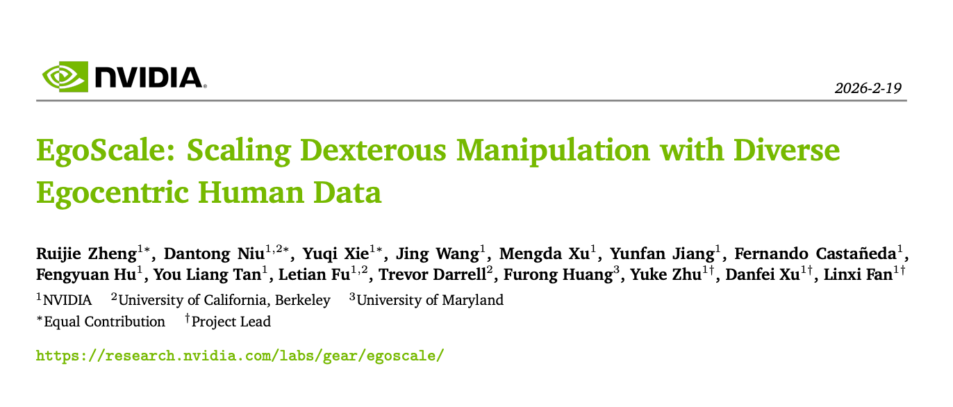 Recently NVIDIA GEAR released EgoScale. My one-line summary is: